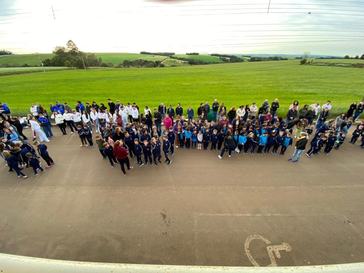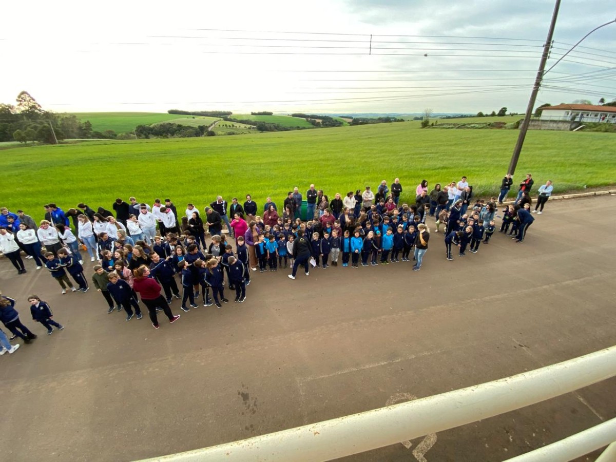 A Hora Cívica teve o momento de apresentações de cada educandário e no final a palavra do prefeito Sergio Lasch.