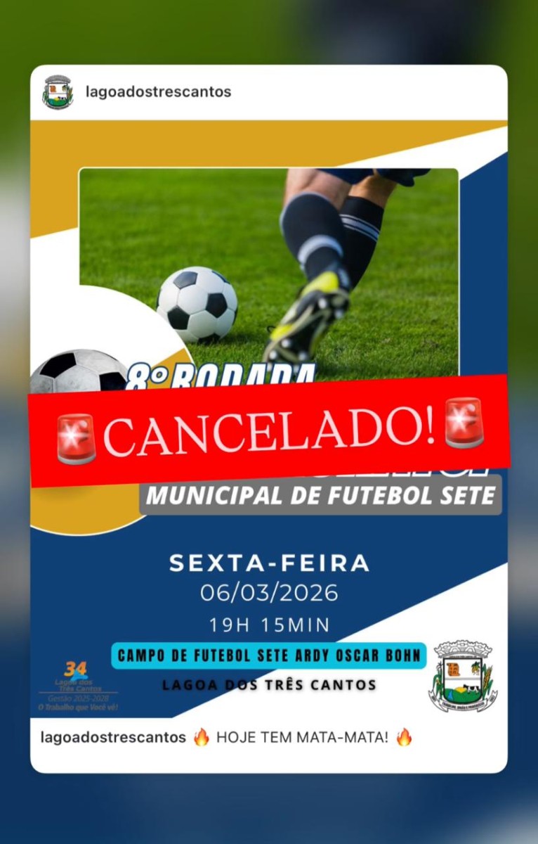 O Campeonato Municipal de Futebol Sete de Lagoa dos Três Cantos – Taça Ari Isidoro Bohn – teria na noite desta sexta-feira (06) a 8ª rodada, já na fase mata-mata da competição.