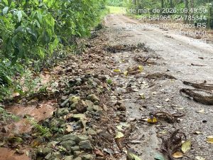 Chuvas torrenciais do final de semana danificam estradas do interior de Lagoa dos Três Cantos