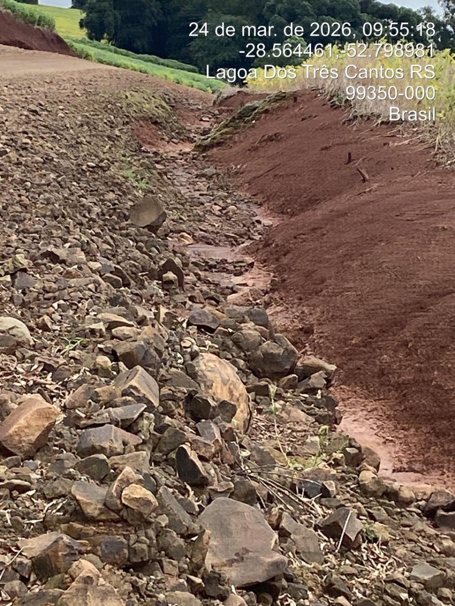 Chuvas torrenciais do final de semana danificam estradas do interior de Lagoa dos Três Cantos