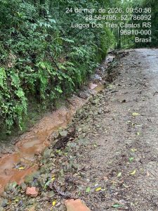 Chuvas torrenciais do final de semana danificam estradas do interior de Lagoa dos Três Cantos