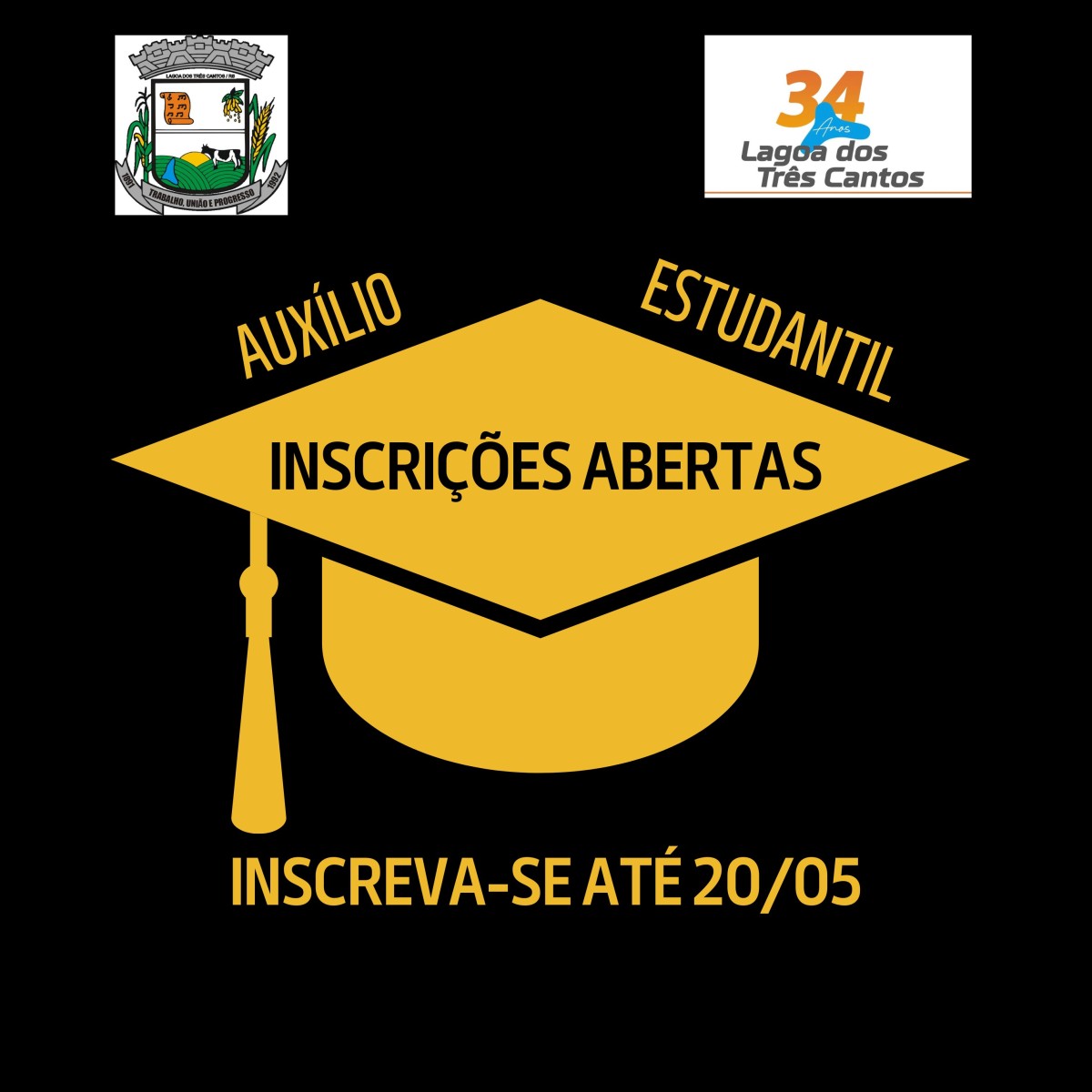 A Administração Municipal de Lagoa dos Três Cantos publicou o Edital nº 5, de 8 de abril de 2026, que abre o período de inscrições para concessão de auxílio financeiro a estudantes do município. A iniciativa é voltada a alunos matriculados em cursos técnicos e de graduação, nas modalidades presencial e a distância, durante o primeiro semestre letivo de 2026.